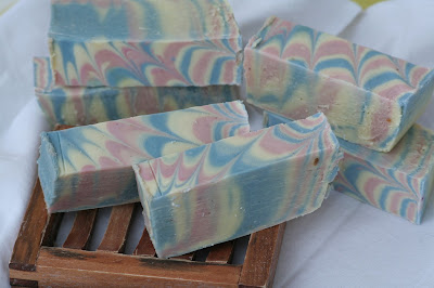 In questo periodo mi sto cimentando con questa tecnica decorativa che produce saponi visivamente molto accattivanti.